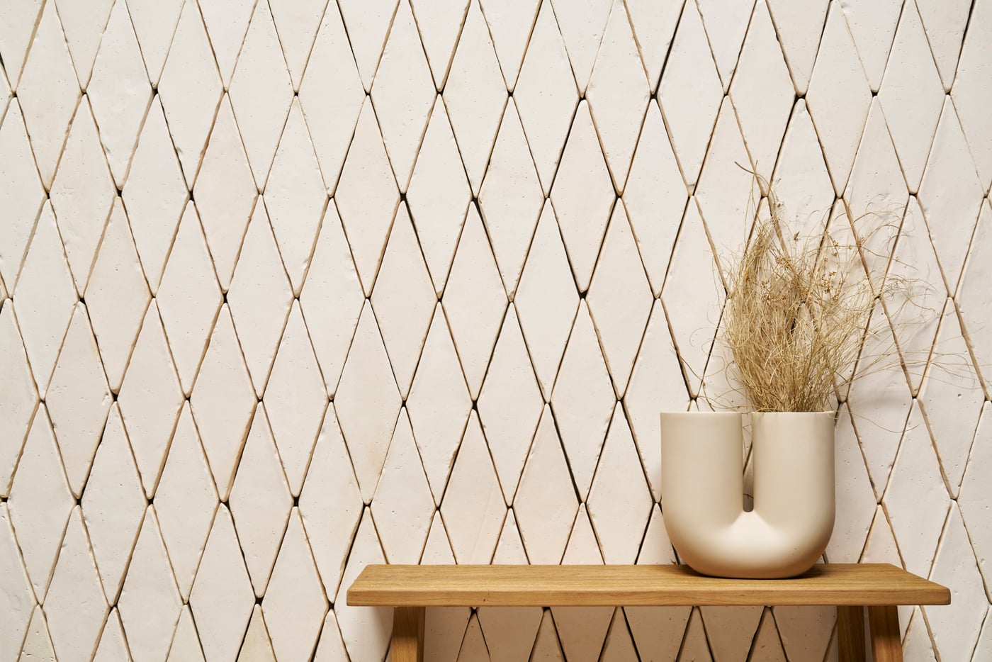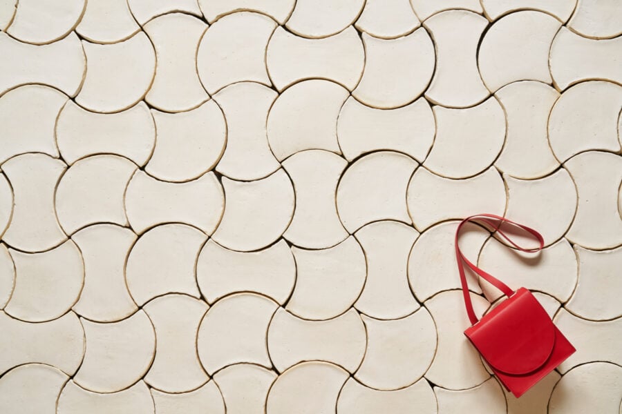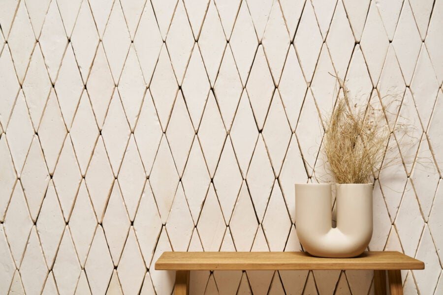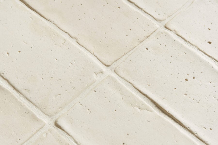 Una vez que las baldosas se secan y son instaladas, la tonalidad blanco antiguo se puede mantener en tonos pálidos, o se pueden intensificar sus variaciones cromáticas con un leve efecto mojado mediante la adecuada elección de productos de protección.