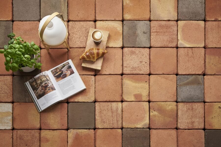 La mezcla selectiva y muy destonificada de nuestras tonalidades rojiza, salmón y pizarra da como resultado el conjunto Baraca: una tonalidad única para suelos de barro.