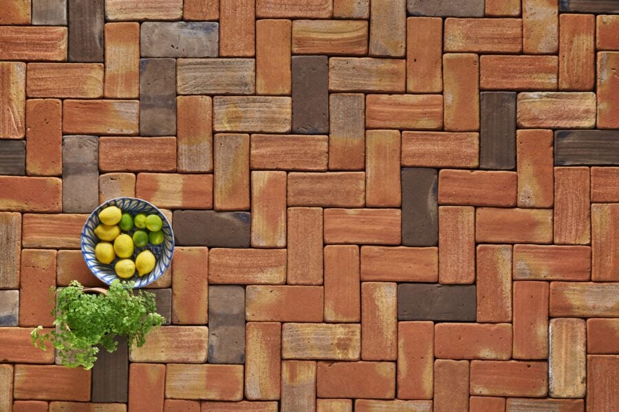 Un suelo y friso de ladrillos de barro cocido para Doble Uve, obrador artesano en Madrid