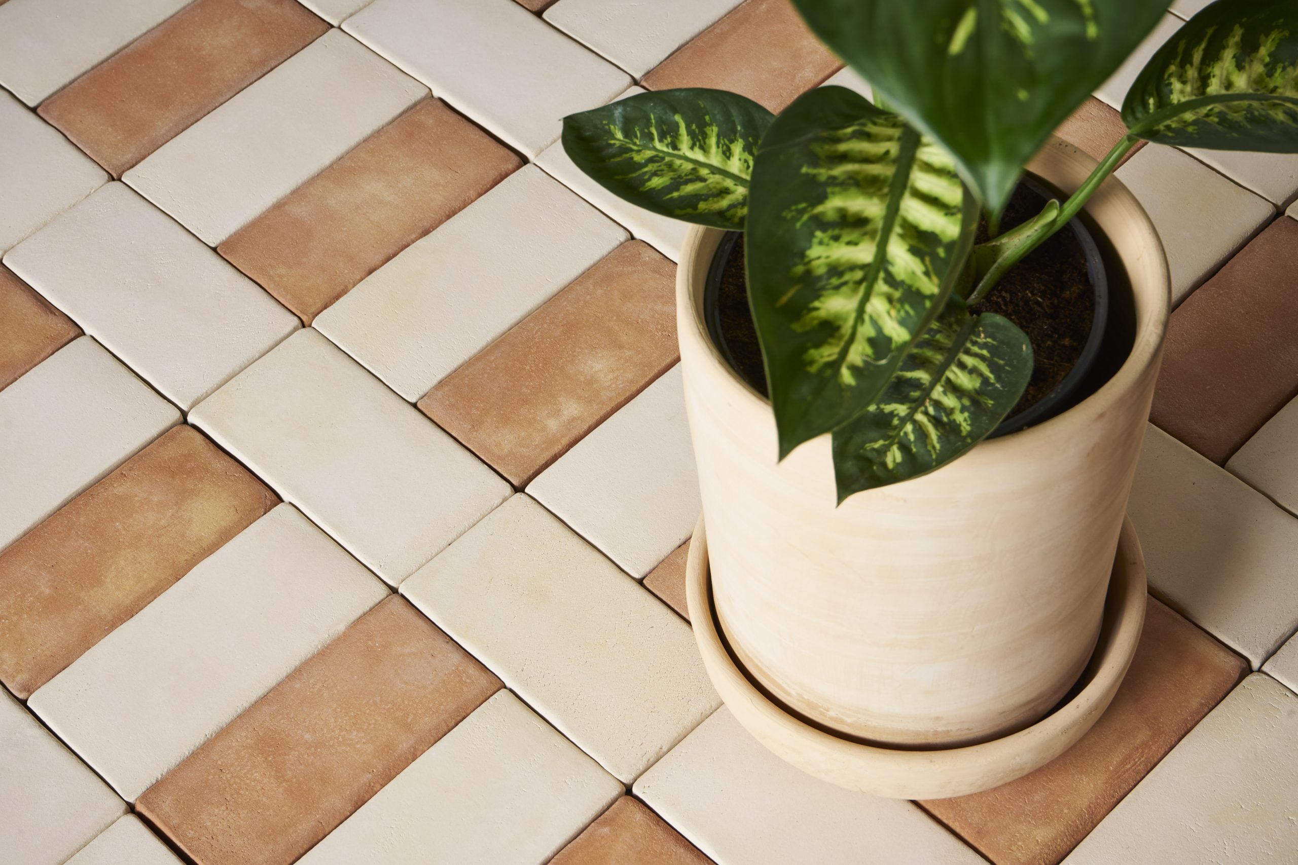 Un suelo y friso de ladrillos de barro cocido para Doble Uve, obrador artesano en Madrid