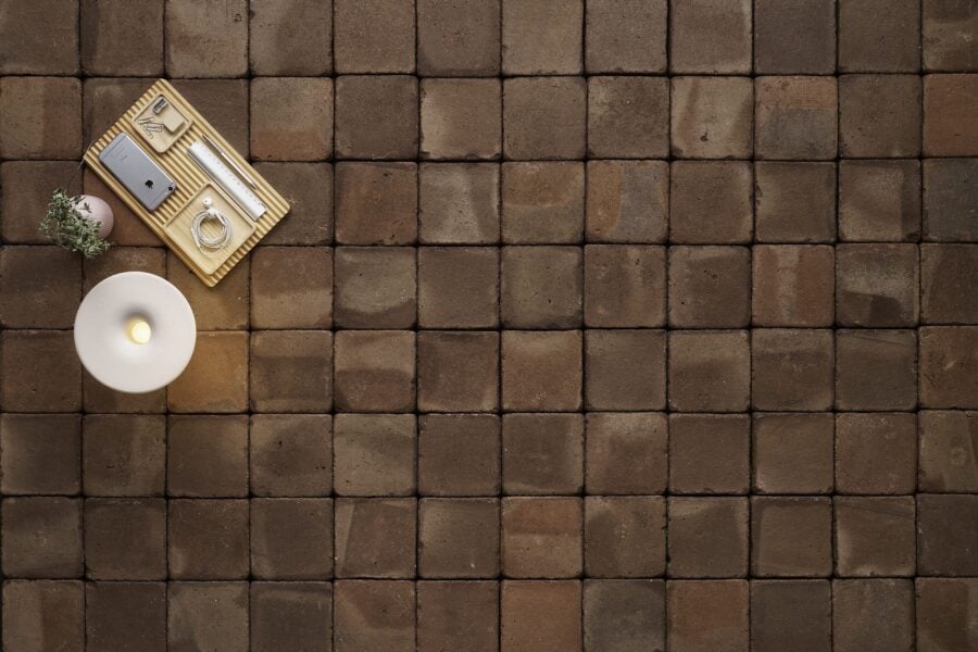 Un suelo y friso de ladrillos de barro cocido para Doble Uve, obrador artesano en Madrid