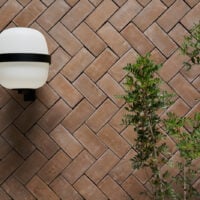 Un suelo y friso de ladrillos de barro cocido para Doble Uve, obrador artesano en Madrid