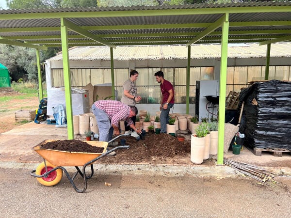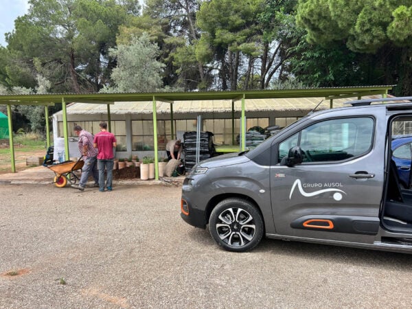 Otra colaboración esencial fue la de Citroen Ausol, que nos cedió una furgoneta 100% eléctrica que pudimos recoger en Vélez-Málaga. Desde aquí cargamos los maceteros y nos pusimos en marcha hasta el vivero de Grupo Lagar, en Alhaurín de la Torre. Así el proceso de naturalización se mantenía también para los transportes que fueron necesarios para recoger los maceteros artesanales, llevarlos al vivero y plantar las especies seleccionadas.