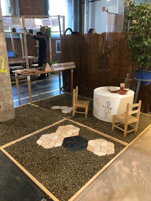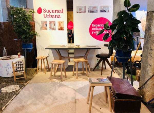 Alejandra Calabrese y Julio Muñoz Lorca, fundadores de Sucursal Urbana (un estudio de arquitectura e interiorismo cuya filosofía se basa en la bioconstrucción), nos invitaron a compartir stand con ellos después de conocer de primera mano nuestro trabajo e incorporarlo en uno de sus proyectos. Gracias a esta invitación tuvimos la oportunidad de exponer nuestras baldosas y azulejos de barro artesanales para darlos a conocer en un contexto en el que encajaban a la perfección, debido a la propia naturaleza sostenible del producto.