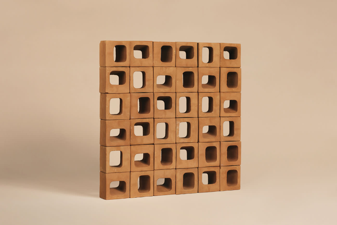 Una celosía diseñada por Carlos Jiménez y Leblume que plantea un novedoso orificio oblicuo. Esta característica permite generar ritmos cambiantes, muros visualmente dinámicos y la posibilidad de jugar con la visibilidad según el punto de vista.