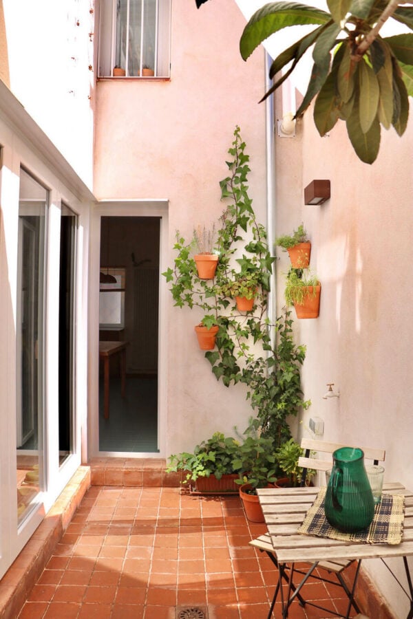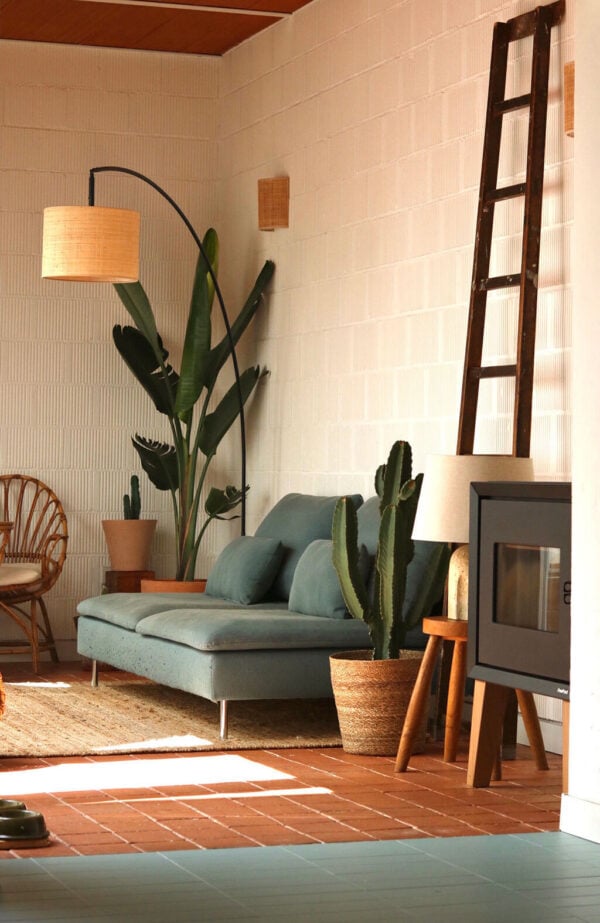 La estancia con más vida y uso en los meses de buen tiempo es el patio-salón, cuando abrimos los ventanales y queda todo conectado. Es ahí donde colocamos el mismo suelo de todobarro para unificar las estancias y que visualmente se transformase todo en una única y sola habitación.»