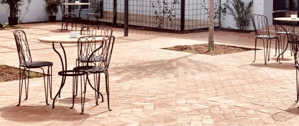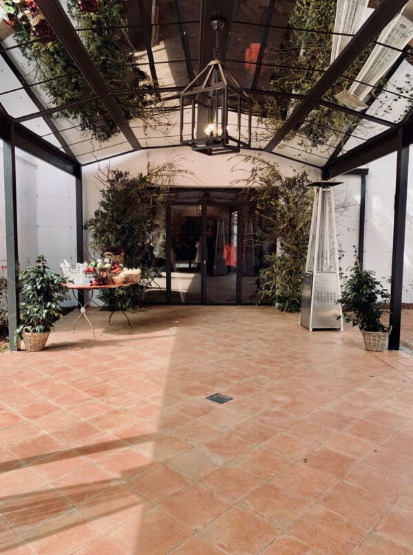 Nuestros ladrillos rústicos y baldosas rectangulares y cuadradas, en una combinación de tonos salmón Antique y rojo Antique, otorgan a esta finca de eventos a las afueras de Madrid un toque rústico a la vez que moderno.
