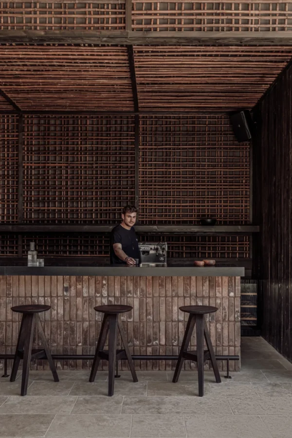 Por otro lado, las innumerables cascadas y ríos que componen la isla son en este caso esas piscinas de agua, que dan el azul característico al lugar. Los materiales cogen protagonismo, a través de los tonos naturales y sin refinar del cuero local, la madera y la piedra que se funden. Aparece ahí el elemento más contemporáneo, como el terrazo liso, para crear un espacio moderno y de lujo que sigue siendo una oda a las raíces de la tierra.