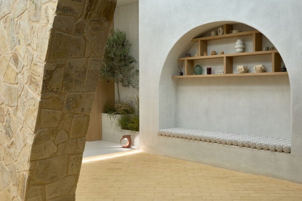 La evocación del paisaje a través de la piedra, la vegetación (hay un olivo y otras especies autóctonas integradas en el diseño) y las superficies es impecable. Y en esta ocasión, nuestra aportación no es solo un suelo de barro, sino también un mural.