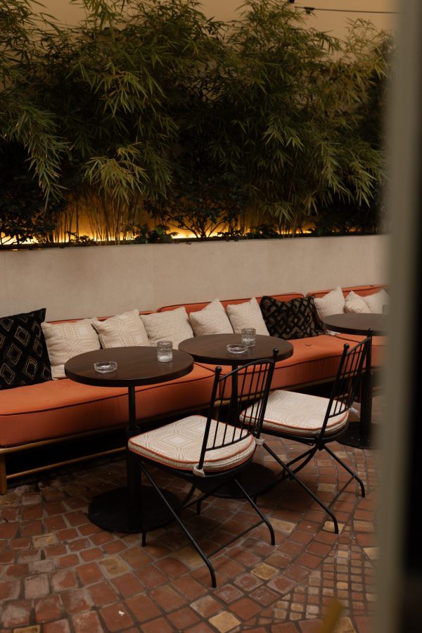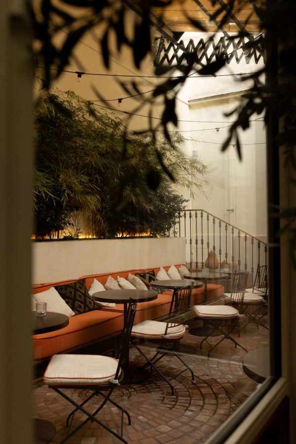 Es un patio relativamente pequeño, con mesas y sillas de hierro al estilo café parisino. El espacio, llamado Le Patio, es un enclave ya mítico del barrio. Su atmósfera reservada y discreta invita a la intimidad sin resultar agobiante, herencia de los patios mediterráneos. Se trata de un lugar habitual para los viajeros y locales, que visitan Le Patio en busca de un lugar fresco e interesante en el que disfrutar de un cóctel, o de su carta de tapas de estilo mediterráneo.