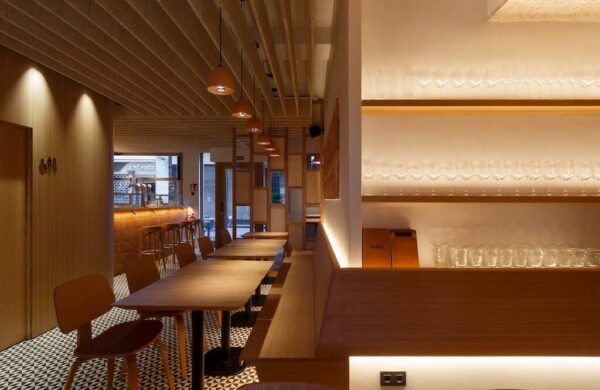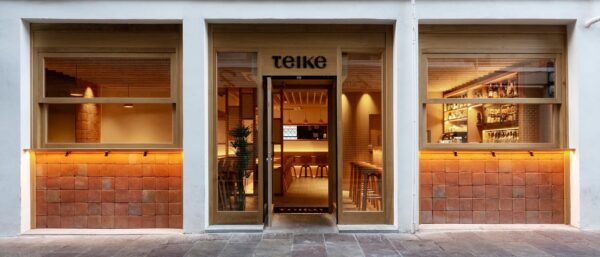 Porque si, evidentemente, como restaurante, lo más importante no deja de ser la carta y sus menús, el espacio que se ha creado para darle cobijo no se queda atrás. Y este es otro de los puntos fuertes de la propuesta de Teike. Una apuesta por un lugar, sobre todo, acogedor, donde priman los tonos cálidos y los materiales naturales, como la cerámica o la madera. En concreto, uno de esos lugares destacados donde se ve claramente esta forma de entender su arquitectura está en las zonas de la barra y las paredes. Tanto la primera como una de las segundas, están revestidas con losetas del Cuadrado 20 rojizo de todobarro, así como otras de la colección Vélez Bovedilla en tonalidad rojiza, que cuelgan como un ‘cuadro’ en la pared destacada.