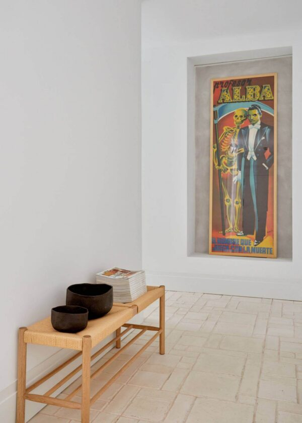 Según las tonalidades, consigue revivir ambientes más antiguos y tradicionales hasta imágenes que evocan obras vanguardistas. De ahí su nombre, pues nadie como el artista para aportar esa visión renovada desde las formas más puras. El suelo de barro se combina con los suelos en madera de roble “Punta Hungría», que están presentes en salón y dormitorios. La combinación de ambos en espacios clave son sin duda una alianza ganadora.