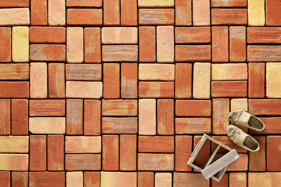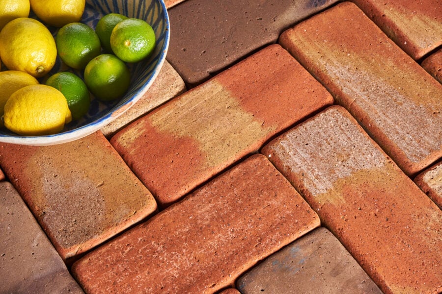 Un suelo y friso de ladrillos de barro cocido para Doble Uve, obrador artesano en Madrid