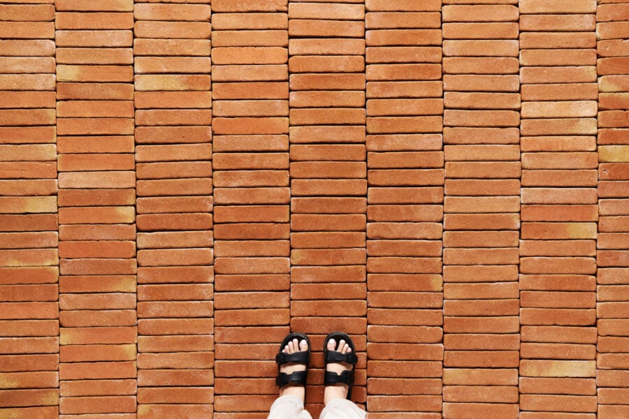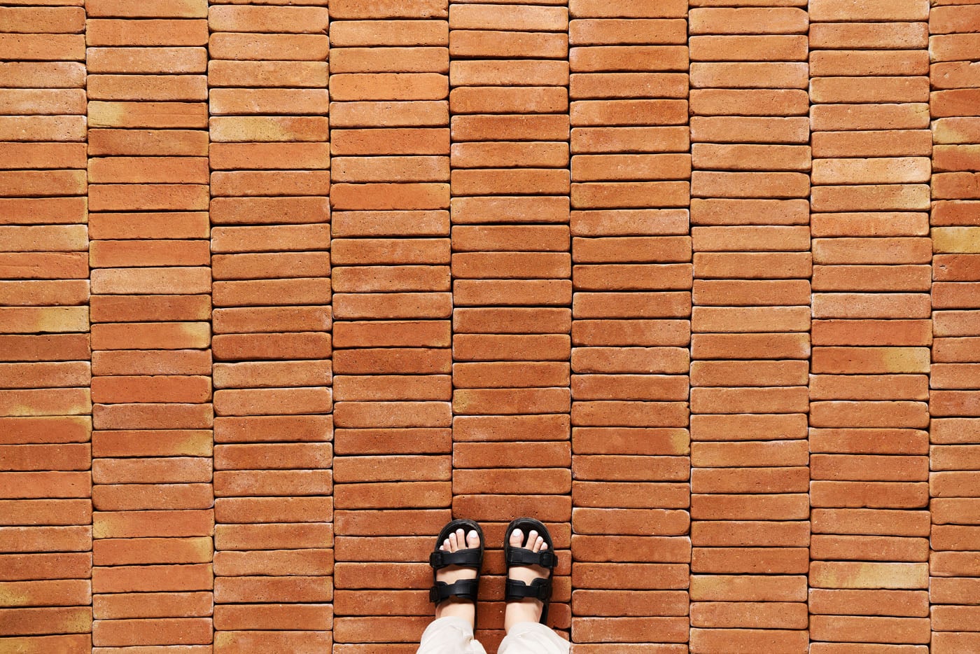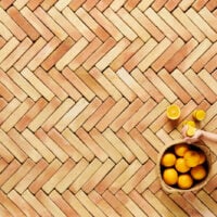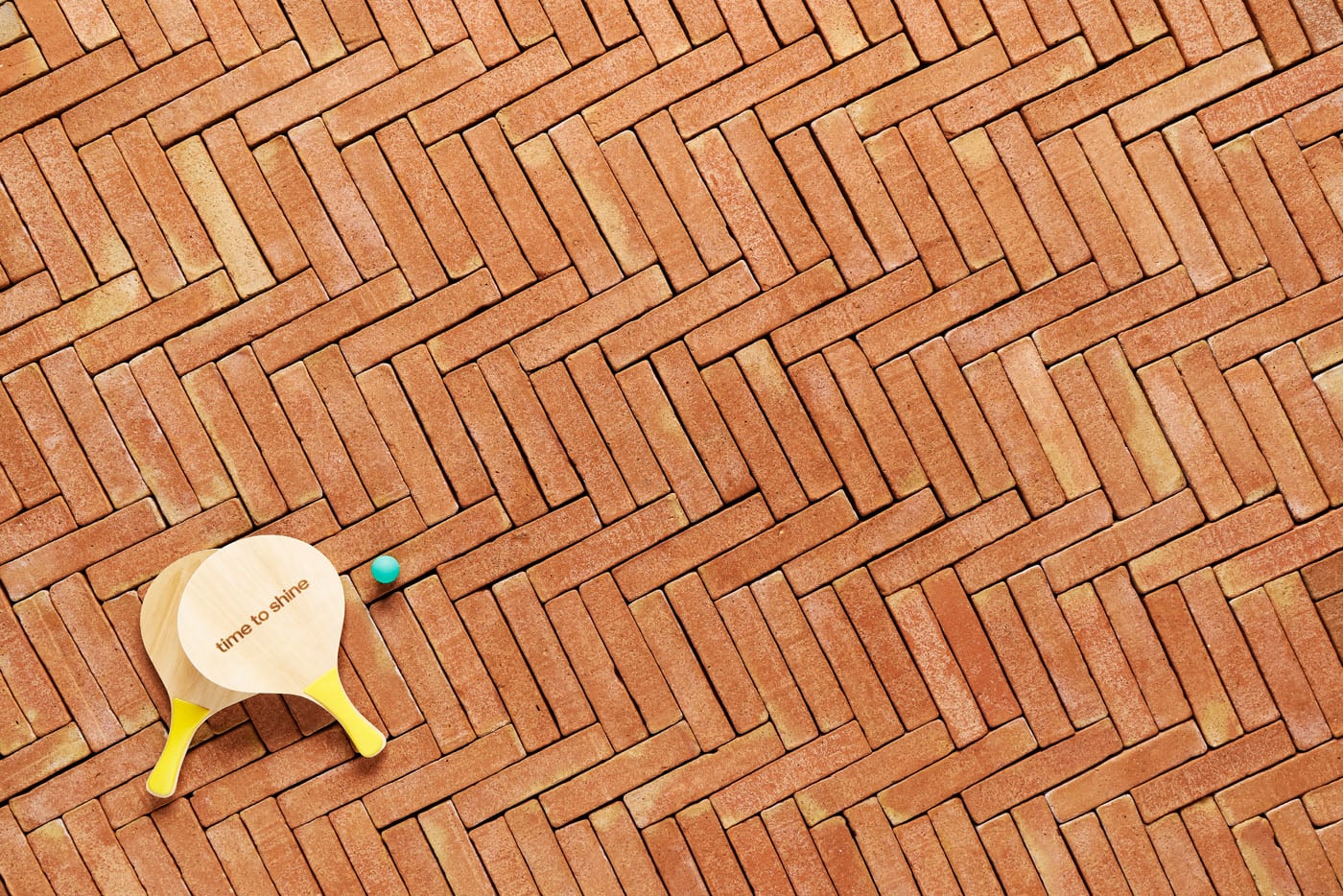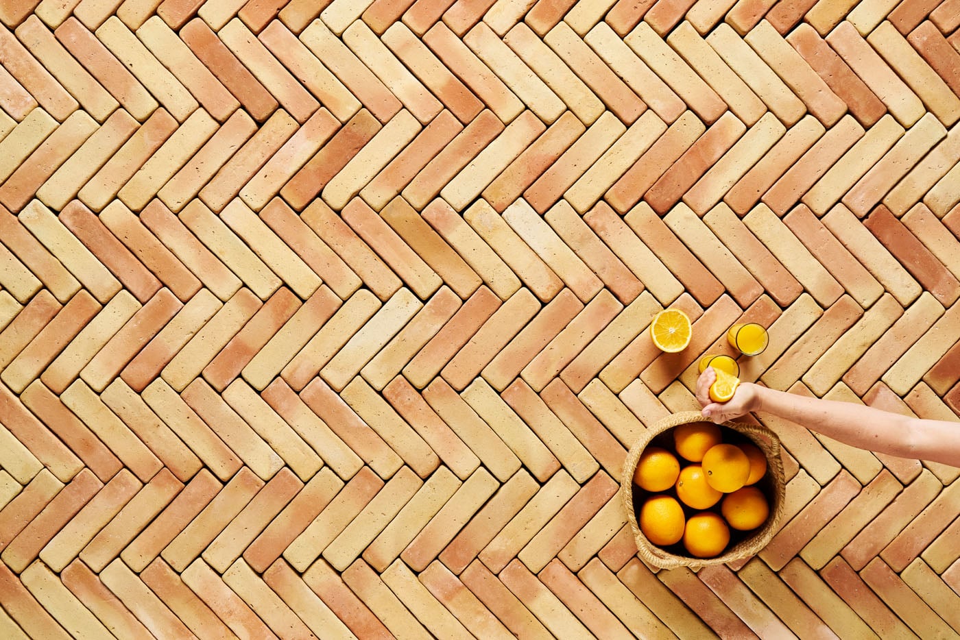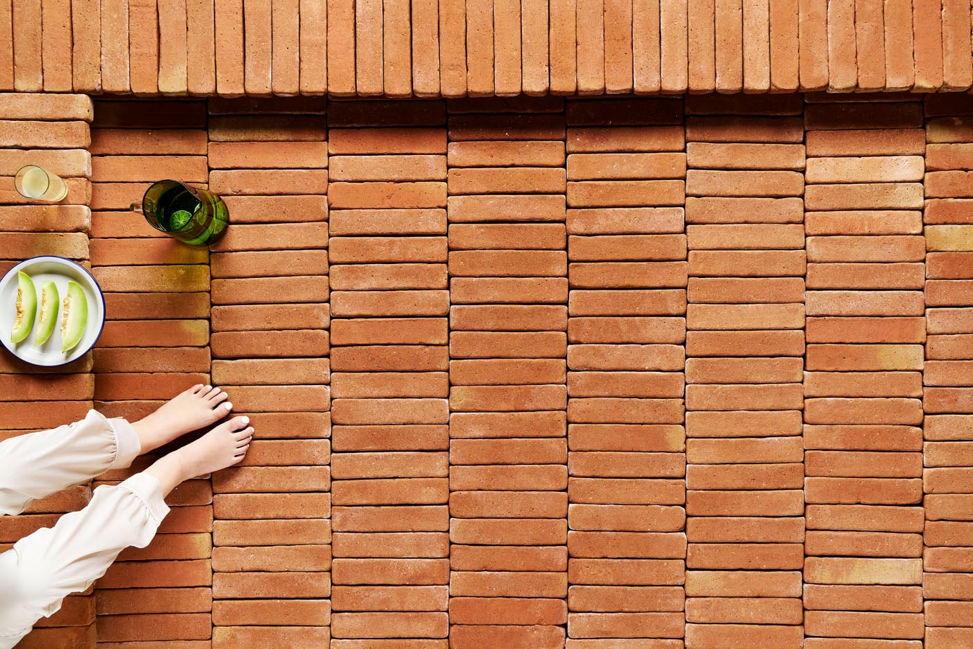 Un suelo y friso de ladrillos de barro cocido para Doble Uve, obrador artesano en Madrid